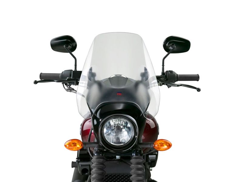 Ons originele en populaire Deflector Screen™ kan eenvoudig worden geïnstalleerd met ons U-Clamp Mount-systeem en biedt onze gepatenteerde NoHole Ballsocket™ en onze Rake Adjust™-hardware zonder gereedschap. U kunt de schermhoek instellen om comfort en stijl te optimaliseren door eenvoudig de vleugelschroeven aan te passen, en het radiale tandvergrendelingsmechanisme houdt het scherm in de hoek die u kiest.