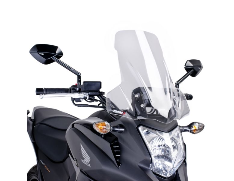 Voor langeafstandsritten introduceert PUIG de Touring-serie om de windstoot tegen de berijder te minimaliseren. Deze schermen verhogen de windstoot met enkele centimeters, waardoor de rijder een comfortabelere positie kan behouden tijdens het rijden op de motorfiets. Vervaardigd met acryl van hoge impact van 3 mm, resistent en duurzaam. Afgerond schermprofiel in 3 mm vanaf modellen uit 2004, conform de Duitse TÜV-voorschriften. Het is niet nodig om een rand toe te voegen. Ook verkrijgbaar met vizier.